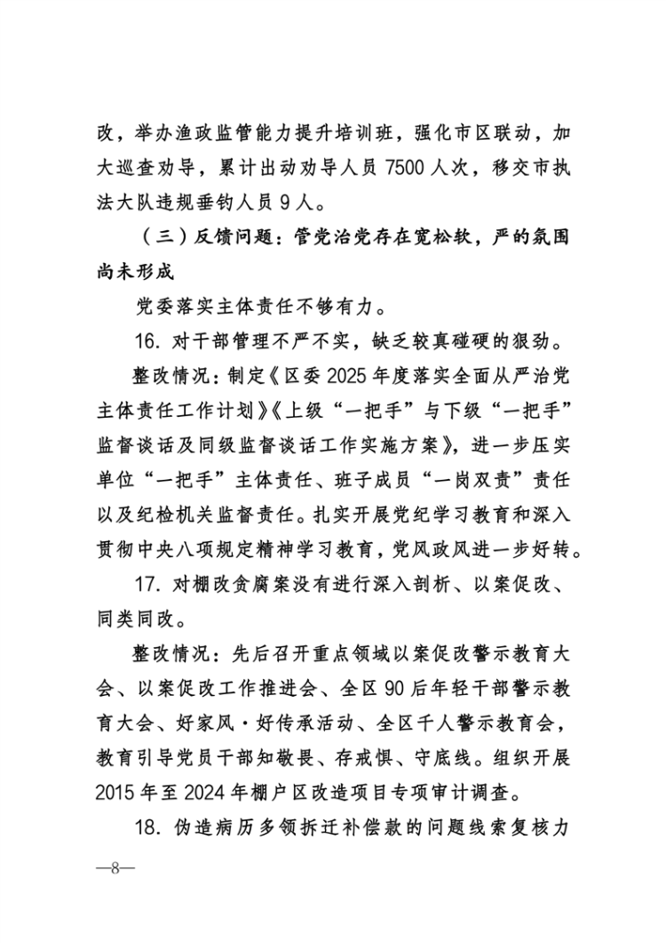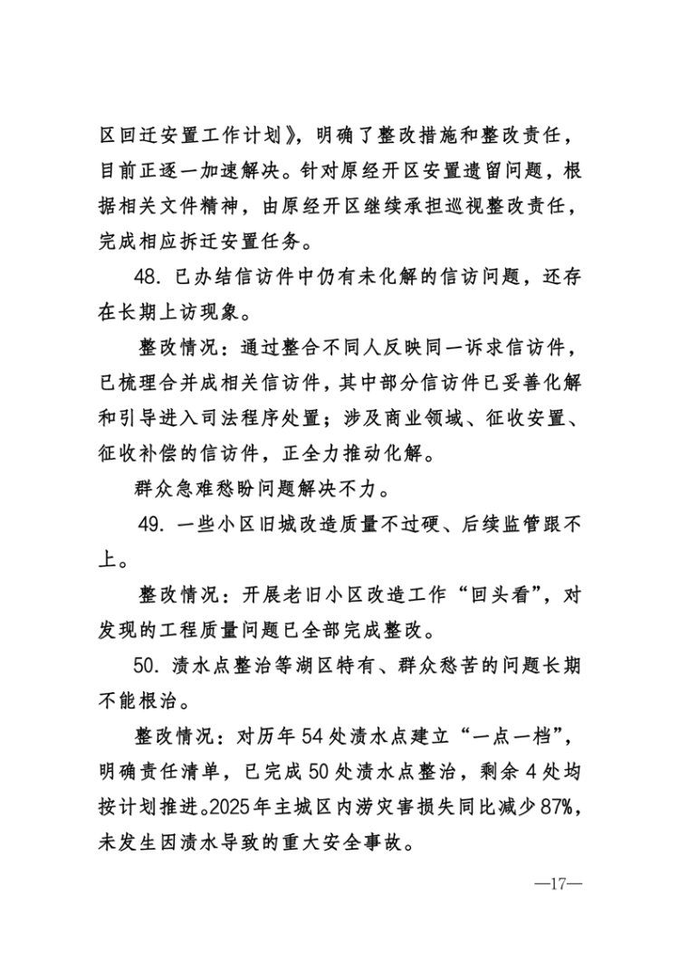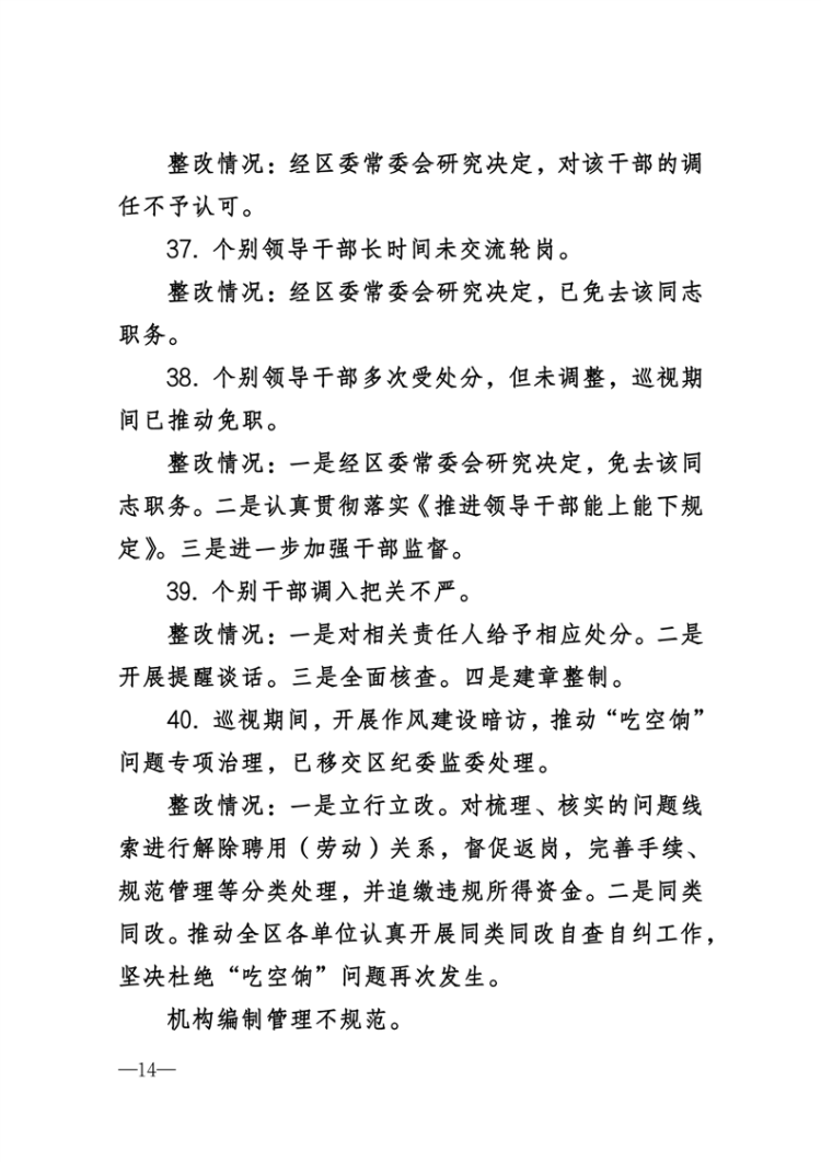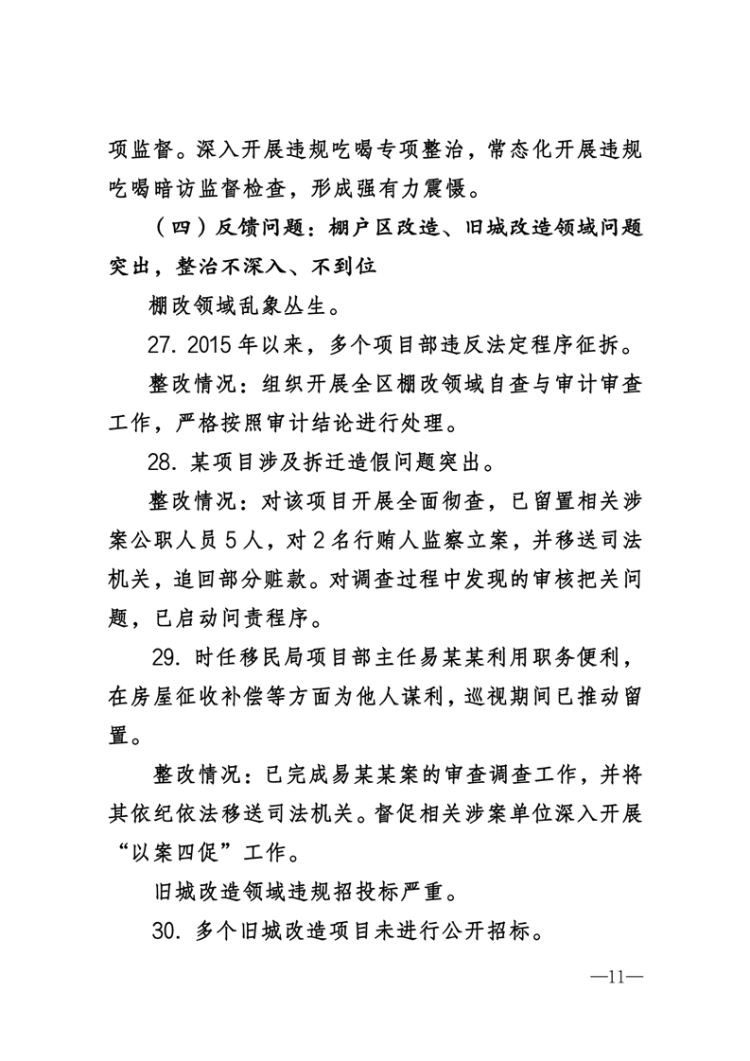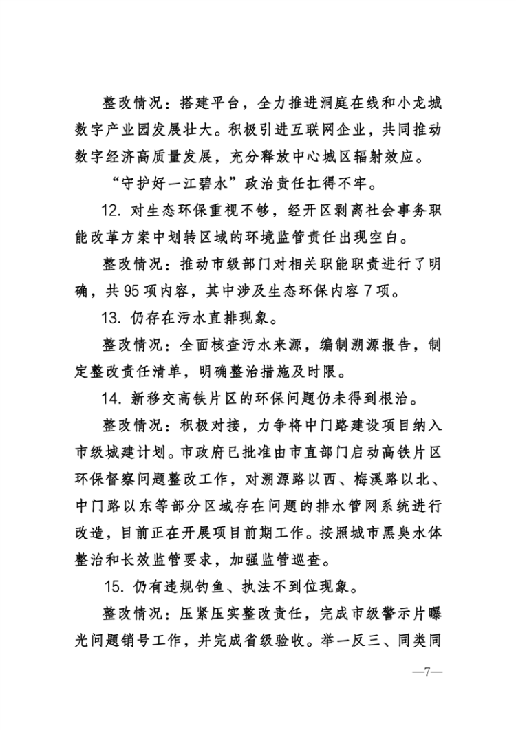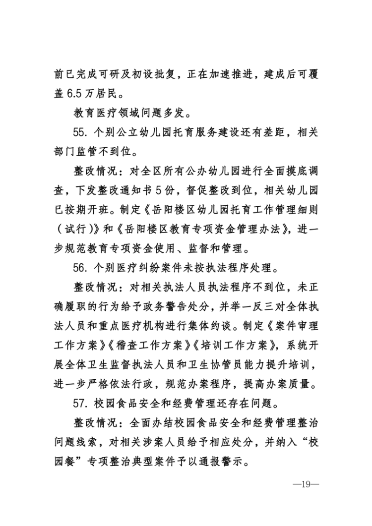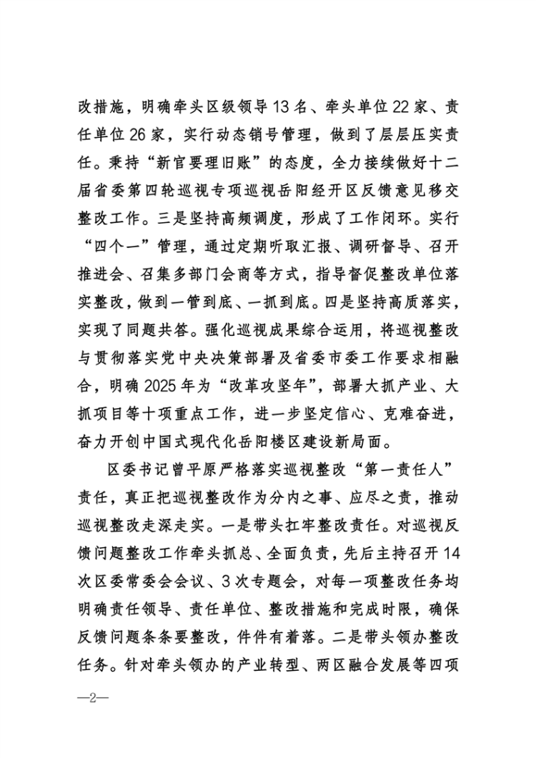 中共岳阳市岳阳楼区委关于巡视整改进展情况的通报